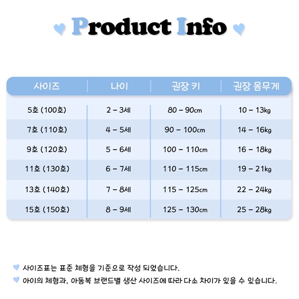 5호,7호,9호,11호,13호,15호,성인(S/55),성인(M/66),성인(L/77)