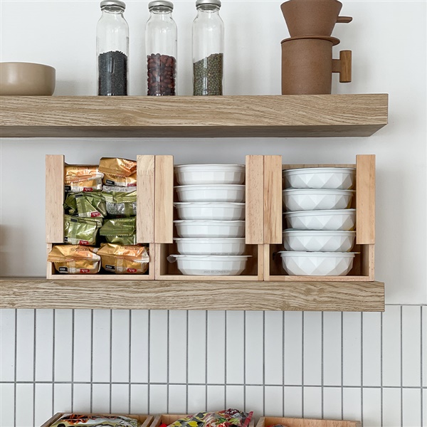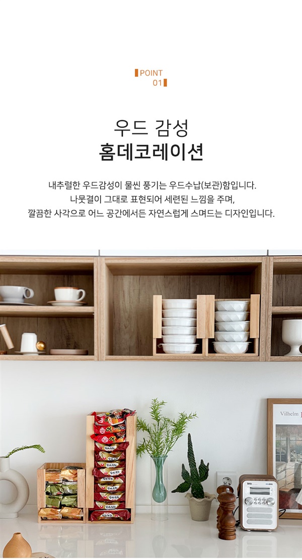 어떤 주방에서도 잘어울리는 깔끔한 다용도 우드수납합!