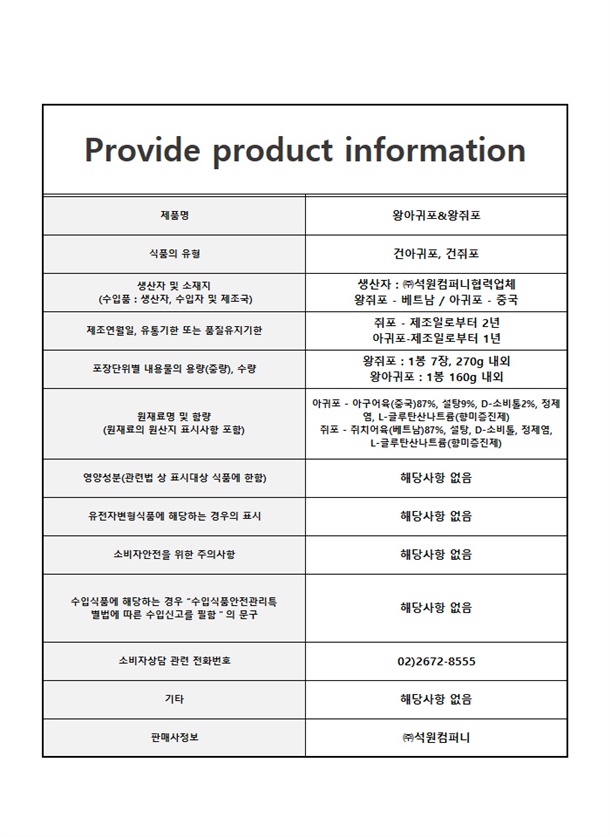 *식품특성상 변심으로인한 교환/반품 불가*